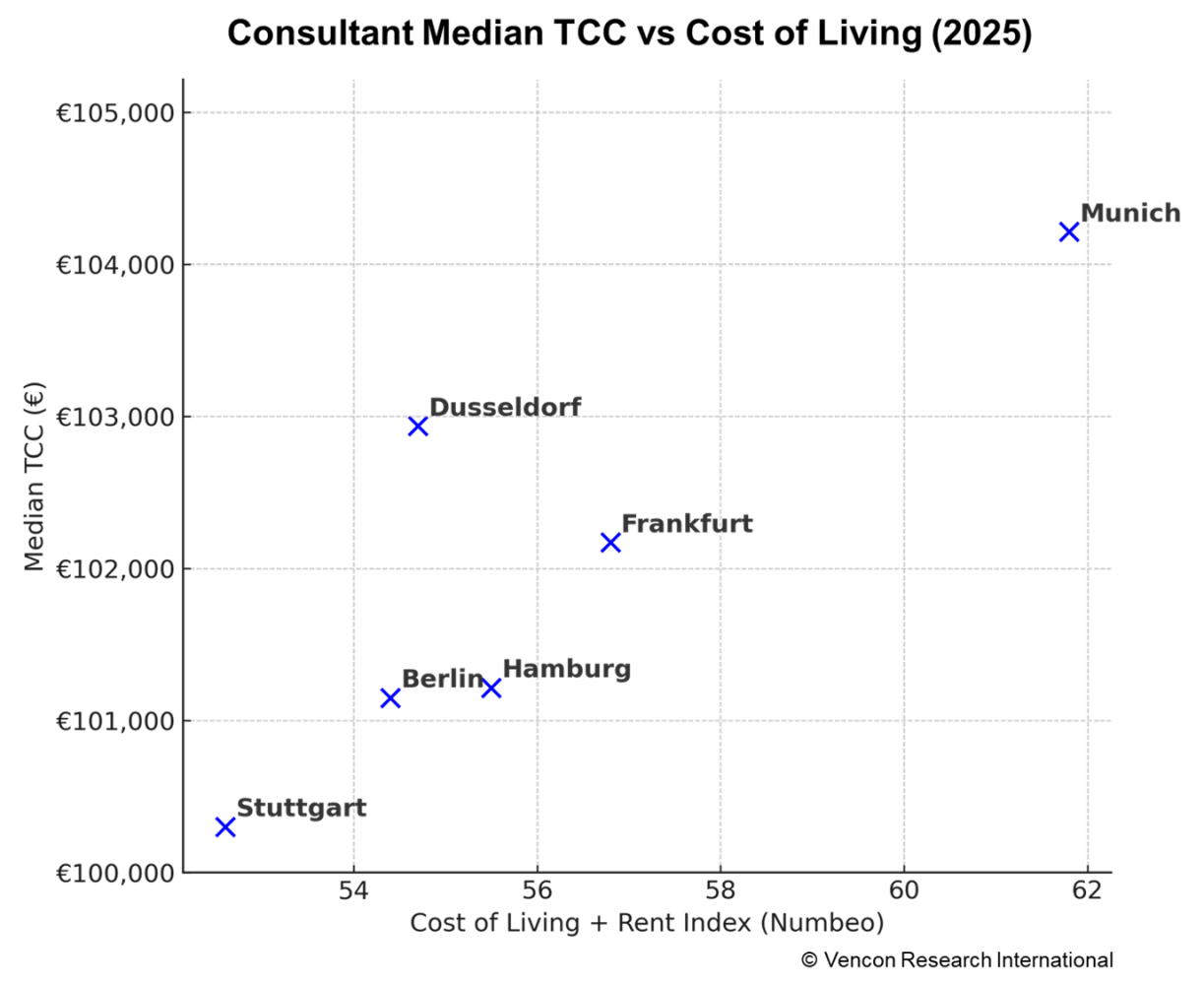 Looking ahead, several dynamics are likely to reshape consultant pay and affordability across Germany’s major cities: